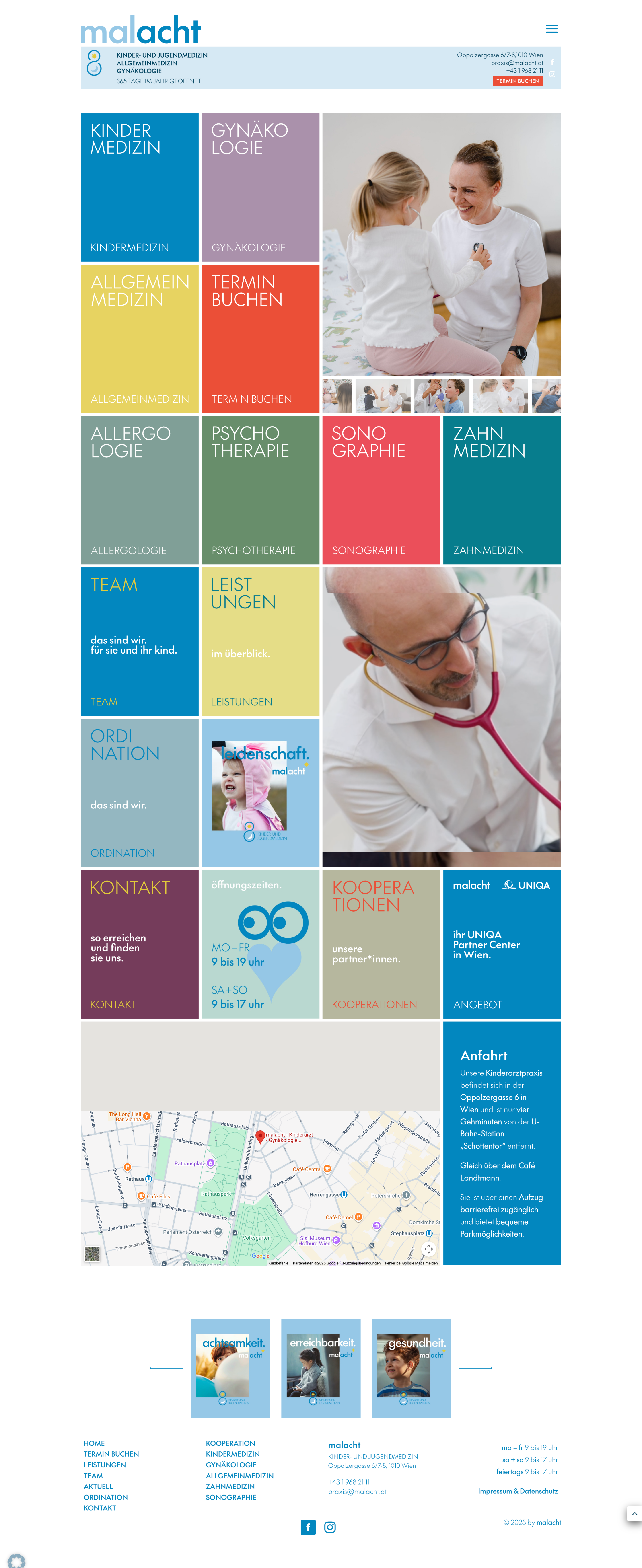 Neuaufbau der Website für das Gesundheitszentrum malacht inklusive individueller Inhalte für mehrere medizinische Fachbereiche und Ärzt:innen.